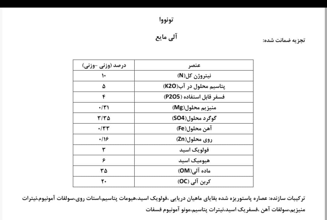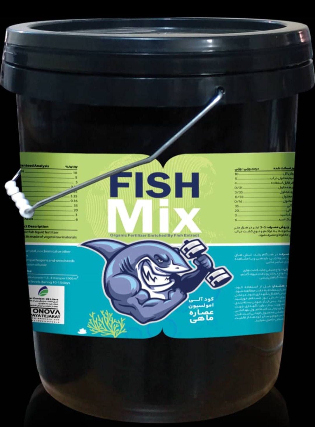 کود مایع ماهی محصولی ارگانیک است که از فرآوری بقایای ماهی به دست می آید.ارزش این کود در مواد مغذی آن است.این محصول بر خلاف کود های شیمیایی ، ترکیبی پایدار و زیست محیطی بوده و نقش بسزایی در بهبود حاصلخیزی و ارتقاء سلامتی خاک و افزایش کمی و کیفی محصولات کشاورزی دارد.کود مایع ماهی یک ترکیب متعادل و واجد عناصر اصلی نیتروژن ،فسفر، پتاسیم و عناصر دیگری نظیر گوگرد ،کلسیم ، کلر ، منیزیم و همچنین آمینو اسید ها و ویتامین ها می باشد که برای رشد و تکامل گیاهان ضروری هستند و باعث افزایش مقاومت گیاهان در برابر تنش های محیطی می شود. Fish mix دارای غلظت بالا بوده، به راحتی در آب حل میشود و در تمامی سیستم های آبیاری قابل استفاده می باشد. از این فرآورده به منظور توسعه ریشه و برگ و سایز میوه و در نهایت افزایش عملکرد محصول استفاده می شود.